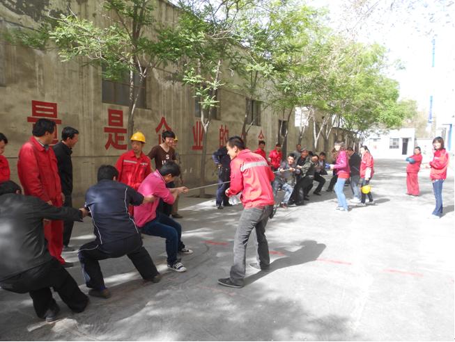 4月28日,銀川公司為迎接“五一”國際勞動節(jié),舉行了一場從總經(jīng)理到一線員工的全員運動會。集體項目有:拔河、4×100米接力、籃球等。個人項目有:100米賽跑、跳繩、象棋、乒乓球、臺球等。公司領導和員工共同參加了比賽,大家熱情高漲,斗志昂揚,讓溫暖、和諧、歡樂洋溢在每一個賽場。